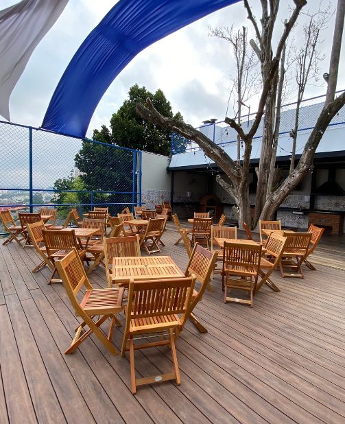 Nosso deck é um dos locais queridinhos de nossa arena, pois possui vista panorâmica para a cidade, além de 2 churrasqueiras e um forno a lenha. Tem capacidade de acomodar até 150 pessoas e é ótimo para uma celebração ao ar livre. As churrasqueiras e o forno podem ser reservados de forma individual, ou é possível fazer a reserva do espaço todo para um evento privativo. Nosso deck permite que você o customize de acordo com suas vontades, podendo trazer bandas, DJ’s, decorações, tudo para deixar seu evento com a sua cara. Entre em contato com a gente para mais informações para realização de eventos.
